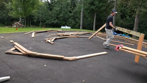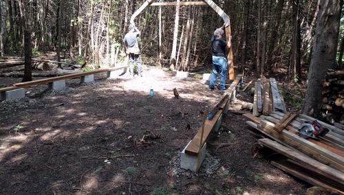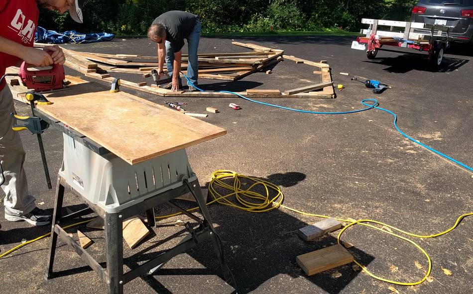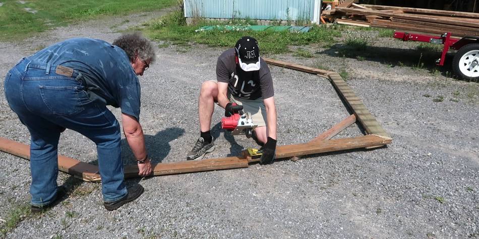 the pieces onto Matt's small trailer. They are cutting it somewhere other than