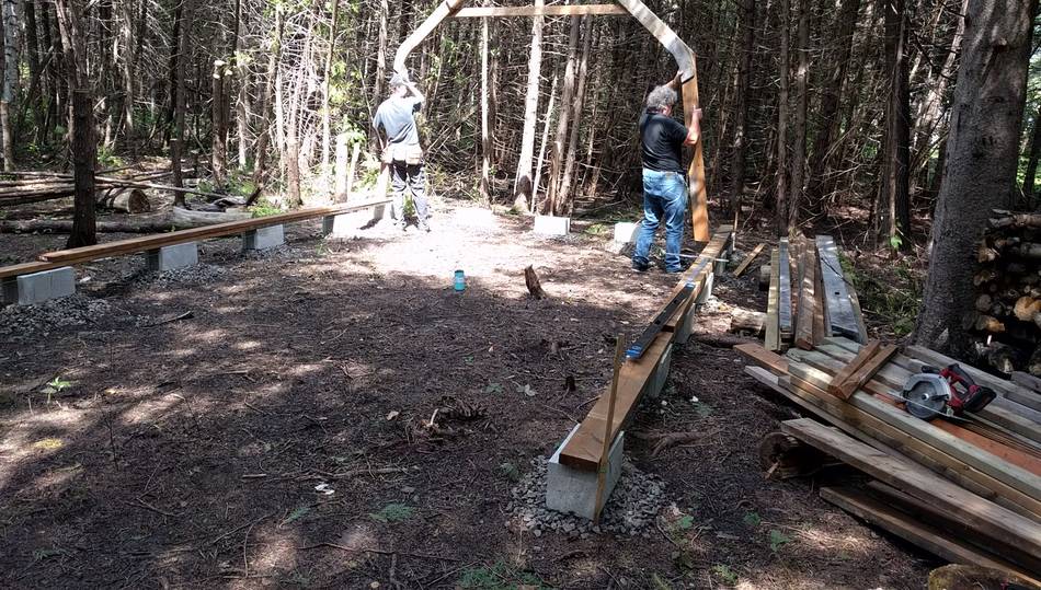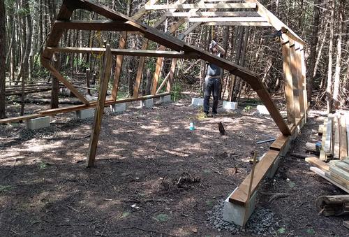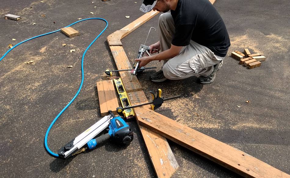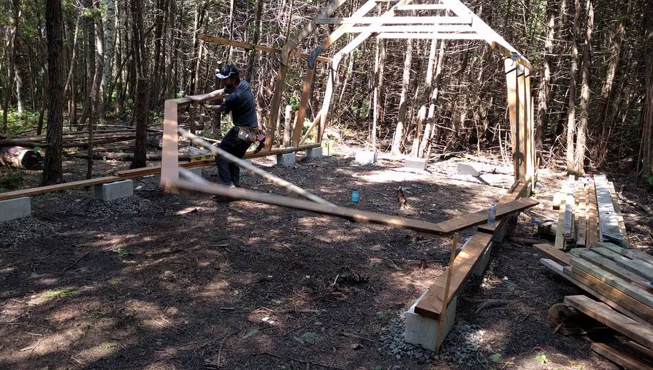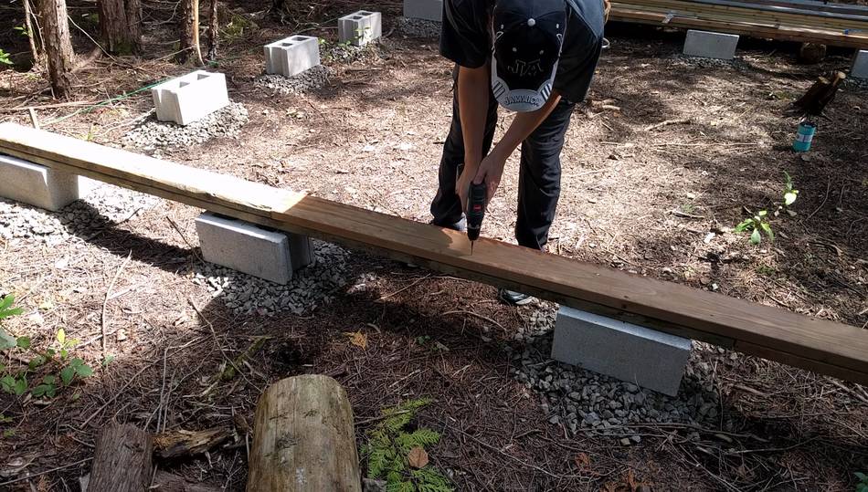 The bottom plate for the shed consists of two layers of 2x6 lumber screwed