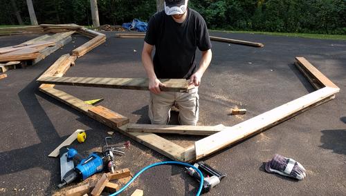 Placing the last frame. It's fun to watch the balancing act in the video.