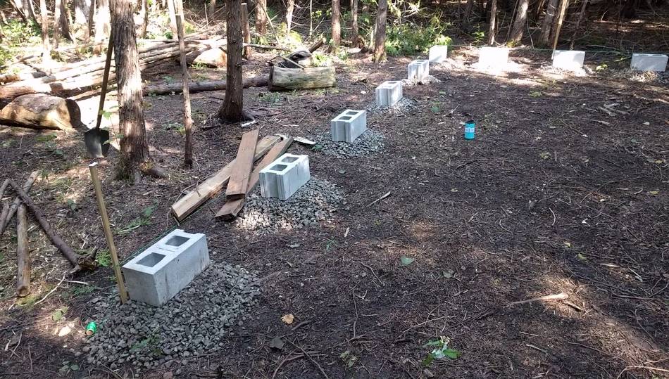 just cement blocks on top of smaller piles of gravel to help with the levelling.