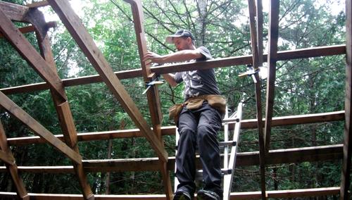 Like I did, Matt used a rope to help pull the frames vertically into position.