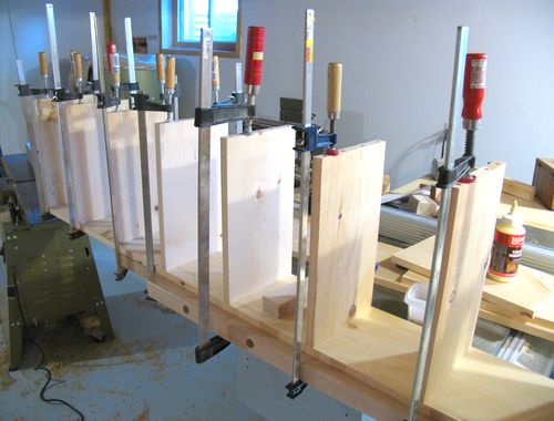 And clamp them. Being sure to check each shelf with a square to make sure its perpendicular