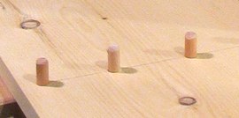 I sanded each dowel to have a bevel on the top end (to form a bit of a cone), to make it easier to align