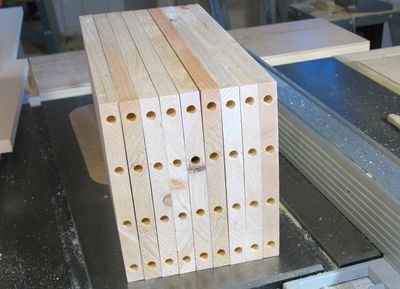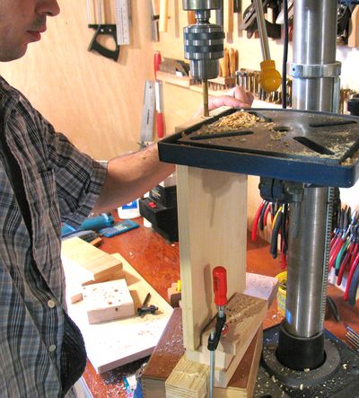 The next step was to drill the holes for the dowels in the ends of the boards.