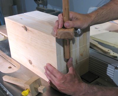 You really do need lots of clamps when putting one of these together. I later built a shoe rack using similar types of joinery at my sister's. Without enough clamps, it was very frustrating to put together.