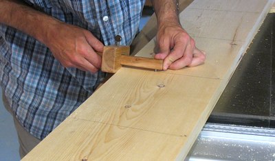 a marking gauge. I put for dowels in each end of each shelf. I used two marking gauges for this, and