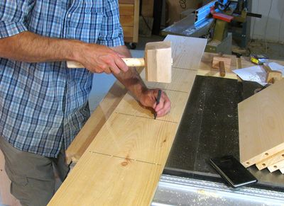 exactly the same width. The next step was to mark the position for the dowel holes with