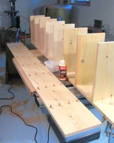 The next step was to glue all the shelves to one of the uprights...