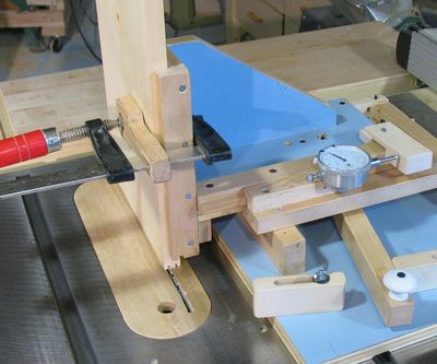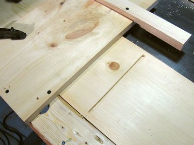 The photo at left shows my temporary jig for cutting the dado. The board at the top