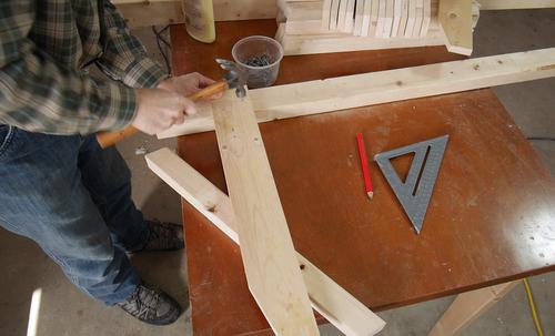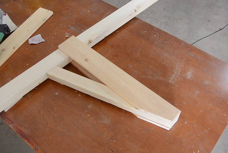 I also cut a bevel on the ends of some pieces of 2x2, using a table