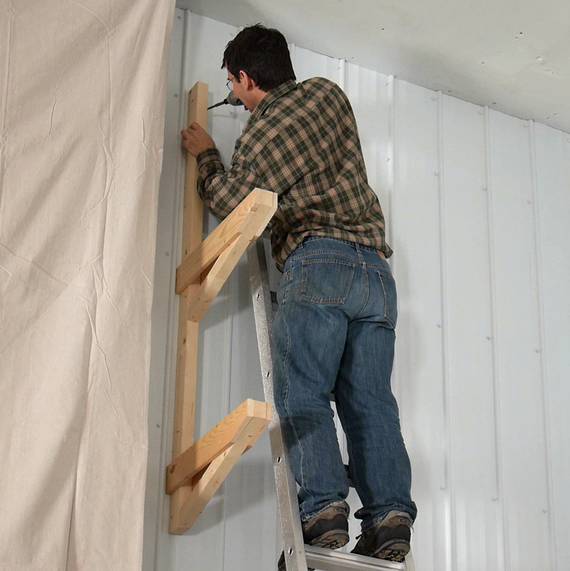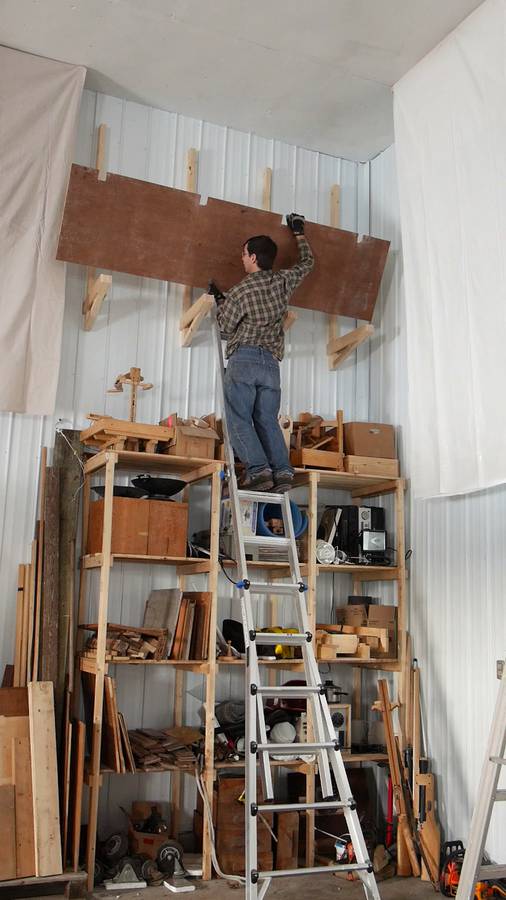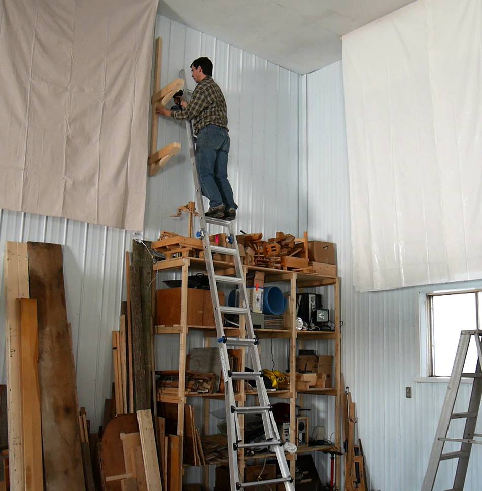 Once I had the top shelf on, I was able to lean the ladder