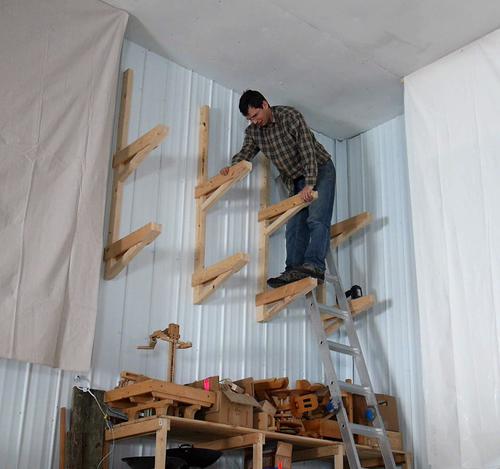 Checking the strength by standing on one of the shelf brackets.