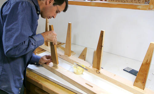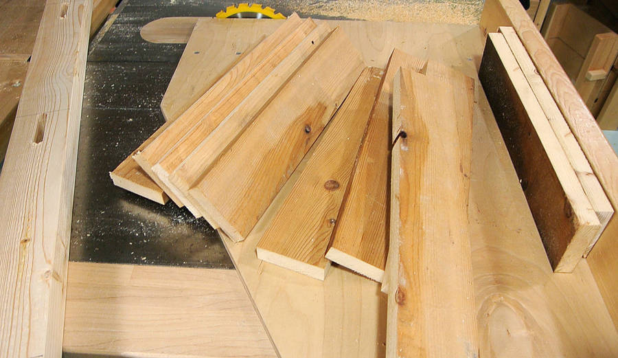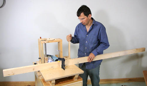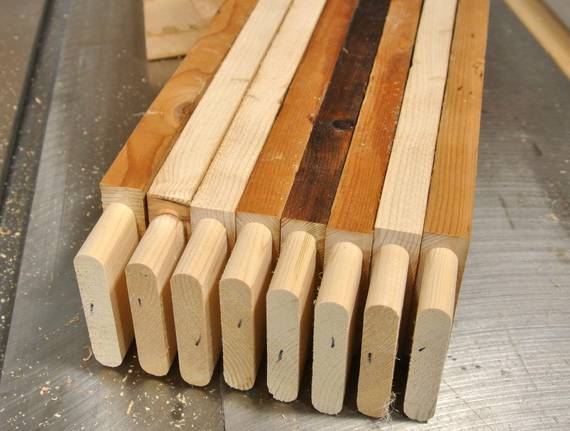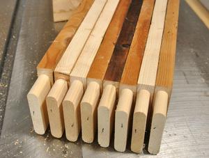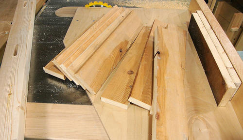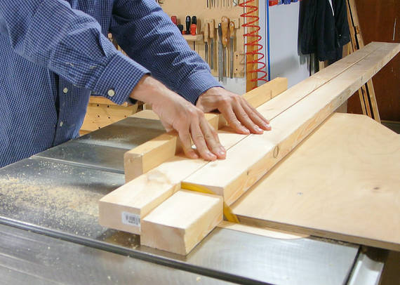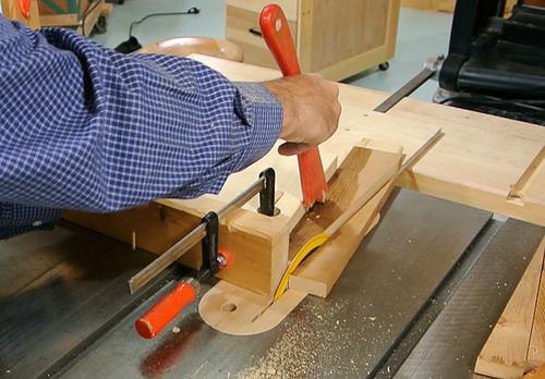 After that, I tapered all the shelf supports. My "tapering jig" is just a piece of 2x4,