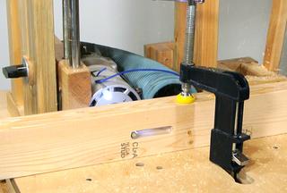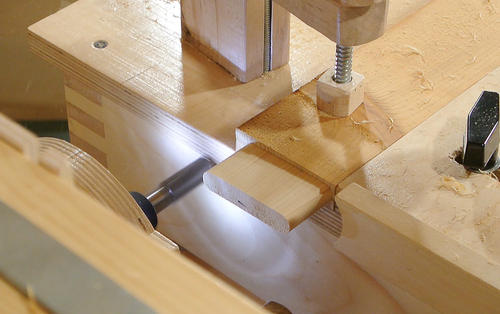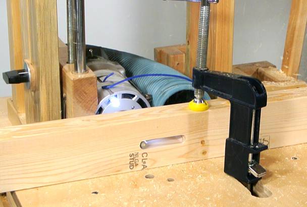 I drilled a hole near the end to clamp it by, and cut the end of the 2x4 at the