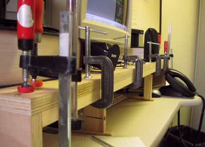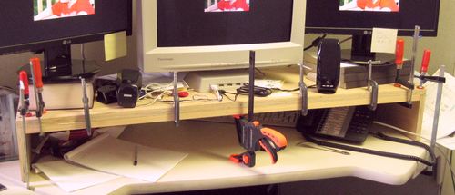 wood up against its stiffness and the weight of the monitors. I did the whole operation