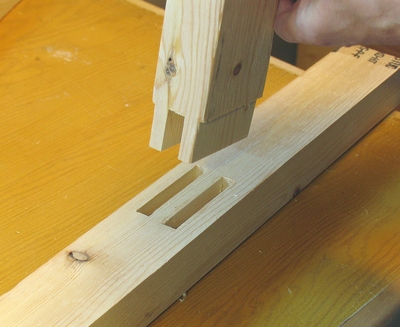 Checking the fit of the double tenon. Double tenon joints are a bit more finicky than regular tenon