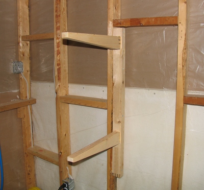 And here's one of the shelf support brackets mounted on the wall. I just screwed them into the sides