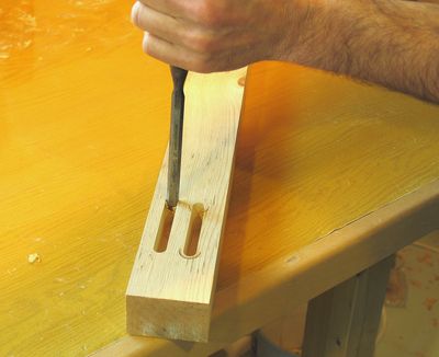 out the mortises. These are 3/16" tenons, so 3/16" chisel is perfect for squaring out the