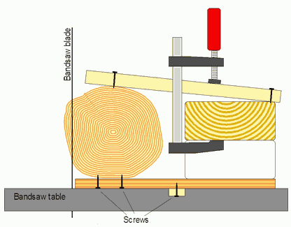 The guy at the wood show was also selling extra wide resaw blades, and riser blocks for 14" bandsaws. Certainly, a resaw blade is a good idea for this application, as the saw blade will often pull a little towards one side or the other. A wide blade, with lots of tension reduces this tendency, as does cutting slower. So use the widest blade that you have if you try this technique.