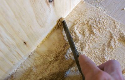 Cleaning up wood glue squeeze-outWhen gluing pieces of wood together, having some glue squeeze-out is inevitable. The only way to make sure there is enough glue to cover the whole joint is to put a little bit more glue in than is needed, so that any excess squeezes out of the joint when its clamped.