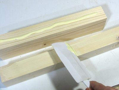 Rubber spatula to spread glueI used to always use a wooden splint to spread glue when laminating large pieces together. Some people prefer to use a roller, or a paintbrush, but that's a bit much to clean up.