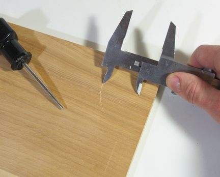 the caliper's jaws to score the line into the wood. It works surprisingly well,