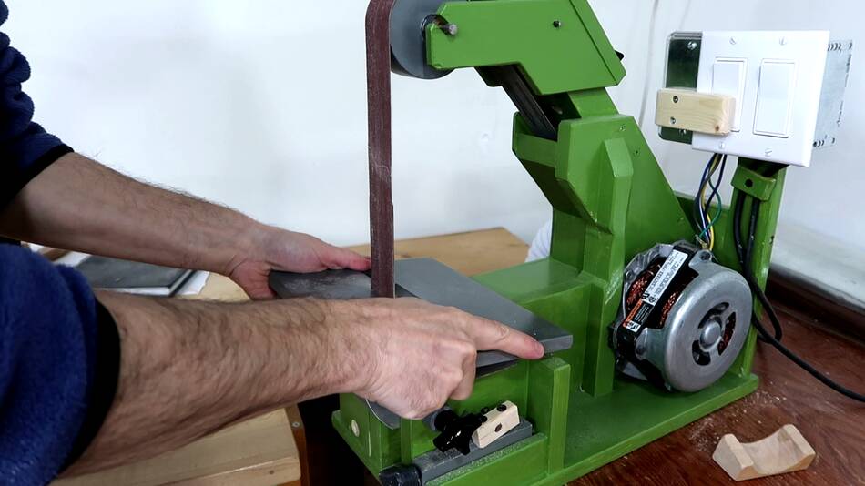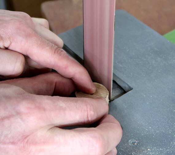 Bext I tilt my sander table against the belt by a few degrees and sand up to the edge of the circle left by the drill.