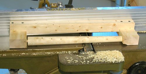 It can also help to make the work piece fit very tightly into the jig, so it will not turn on its own, although that makes it less convenient to turn the spindle. I personally prefer it easier to turn, and hold its rotation in place with my thumb on the outfeed table side of the spindle.