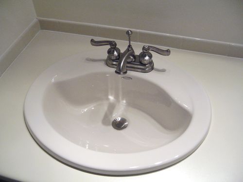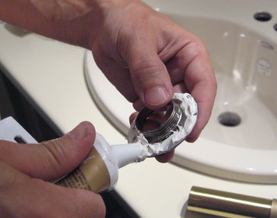 on the stem of the sink. Be sure to put the nut and wedge shaped