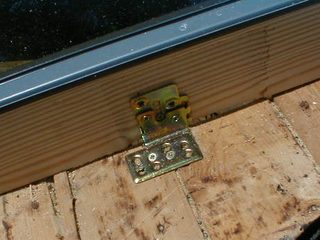 With the extra framing done, it was time to cut a hole in the roof. To make sure I'd got the right spot on the outside, I drove a nail through the sheathing from the inside, so that I could see where it was on the outside.