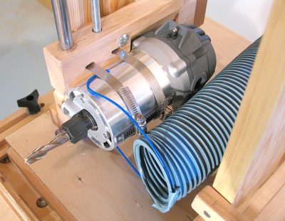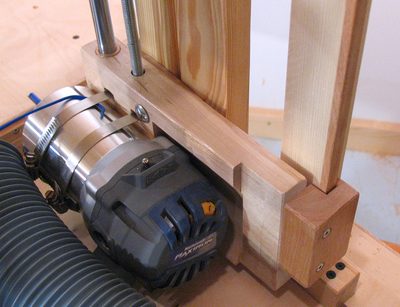 The router's vertical position can also be locked by tightening the knob in the left of this photo. This presses the router mounting bracket against the frame, locking it in place and stiffening the whole assembly.