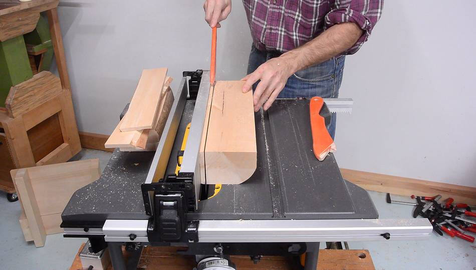 pieces of firewood. Here I'm resawing one of the pieces, cutting from