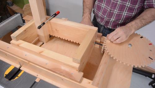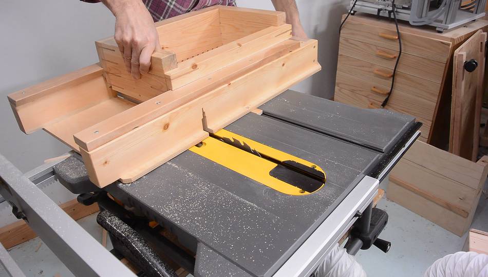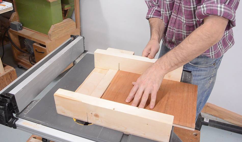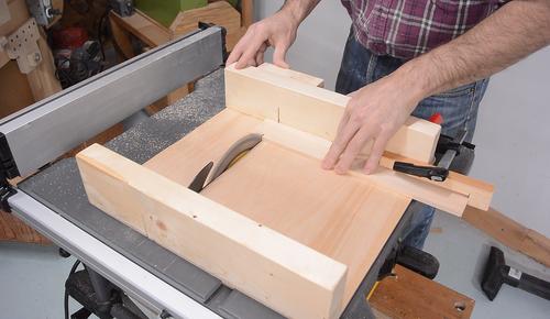 saw sled and started cutting slots into it. Into the second slot, the saw just