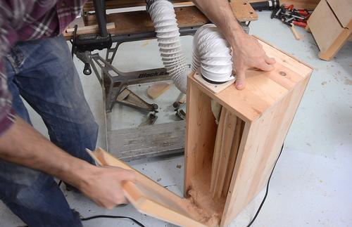 to the saw. It's quiet, and it has enough suction to pull the sawdust into it