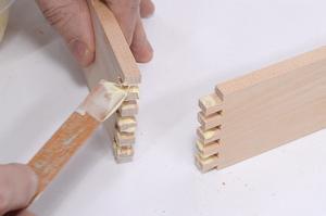 I'm making the boxes out of 8 mm thick pieces of birch hardwood, cut from