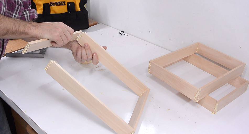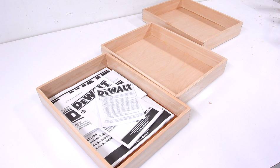 them, I cut a bevel around the bottom edge of the boxes. Again, with the DeWalt