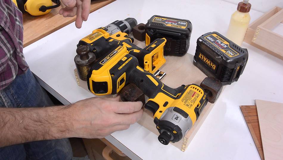 Then applying glue and putting on the bottom, using some DeWalt FlexVolt