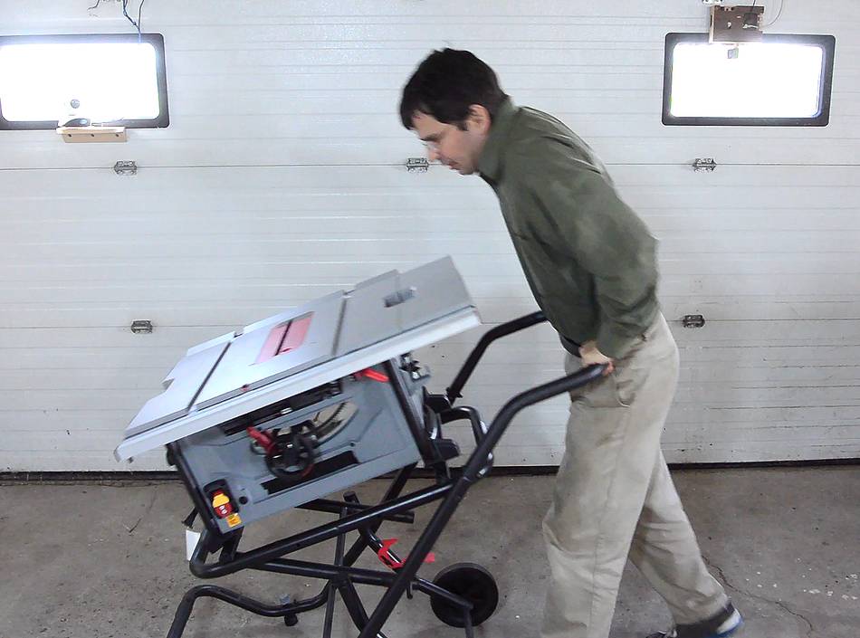 * It has a large table, with the right part of the table able to pull out for ripping wider stock (most jobsite saws have this feature). It also has an outfeed support that can be pulled out on the back. The top of this support is bevelled, so if the stock droops down a bit by the time it gets to it, it pushes it back up. This is a nice feature. For some jobsite saws, this would be an extra cost add on. * It has a soft start. I consider this a nice safety feature, because if your fingers or some piece of wood is touching the blade, it won't immediately cut or throw them. It also helps if the saw has to run off a long extension cord. Once it's running, it runs at a constant speed, even while cutting, unlike a lot of jobsite saws that spin very fast when under no load. It also makes the saw run a bit quieter. * It has a riving knife, that can be raised to attach a guard to the top, lowered to riving knife height, or lowered even further. A button and a small thumb screw are used to fix and lock it at these detent positions. * The saw comes with a push stick attached to it. The push stick is more the "stick" type push stick. Unfortunately, it only comes with one, and I really think these should be used in pairs. * The built in outfeed extension is very nice. * The fence locks on the front and back. The cool thing is, it locks on the front first, which squares it up, before the lock on the back engages. Often, fences that lock on the back can be put on non-square if you aren't careful.