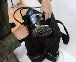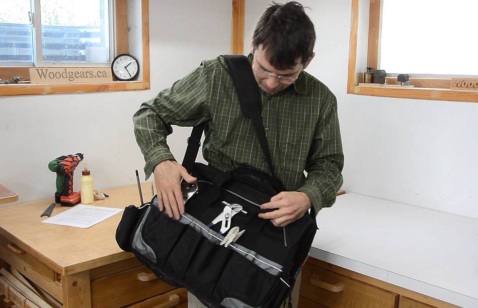 One of the tools I picked was a tool bag. Why a tool bag? A router I bought a few years ago came with a bag instead of the usual moulded plastic case, and I started using that as a tool box. I find it much handier than an actual tool box. If you are one of those people that has a carefully arranged tool box where every hand plane, mallet, chisel and dovetail saw has its dedicated spot, then a tool bag is no substitute. But I just throw what I need in the bag and go. And for that, a tool bag makes much more sense than a box.