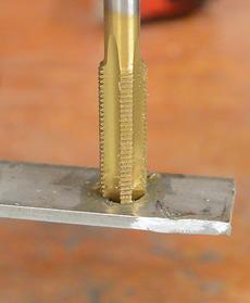 It's important to backup every half to quarter turn to break the chips, and for deeper holes, it helps to back out the tap and clean it up every few turns so it doesn't get clogged with chips. The tap can get so jammed with metal chips that it's impossible to go forwards or backwards without breaking it. This is especially important for deeper holes and smaller taps.