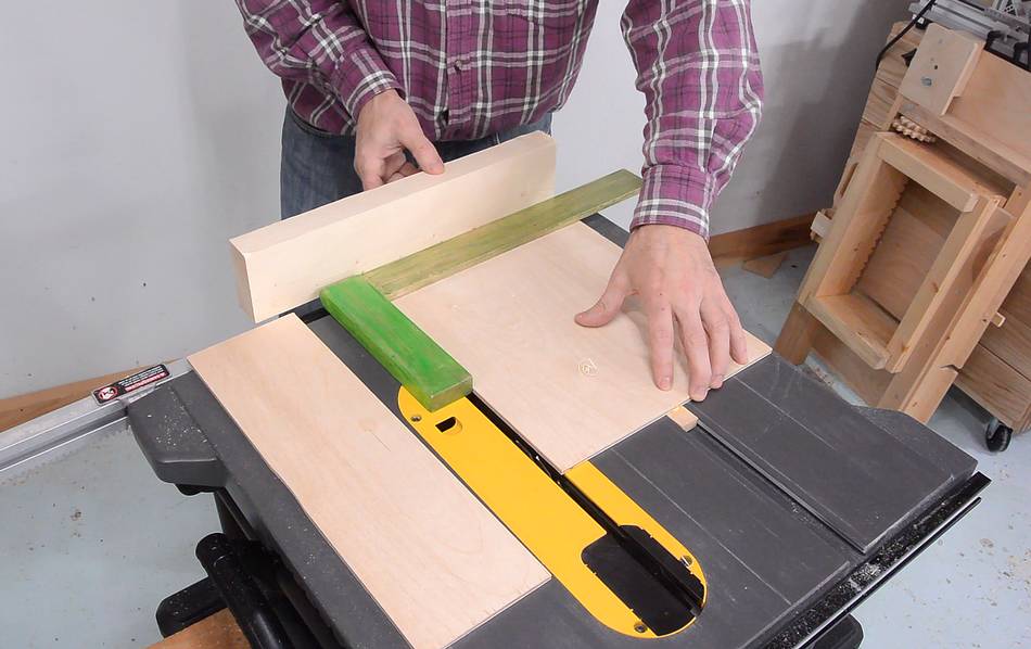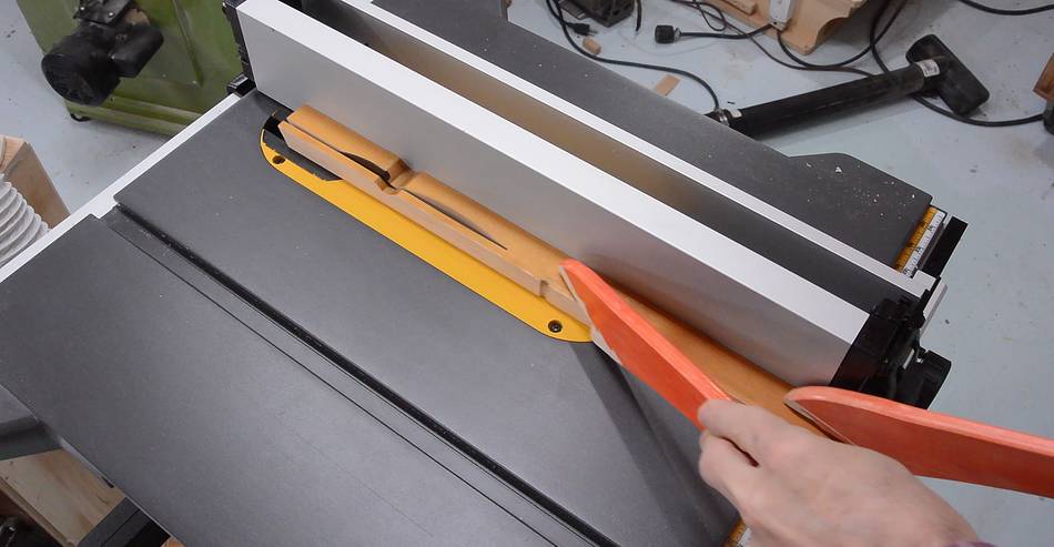I had to extend the miter gauge's fence. I cut a bevel on the back of this fence