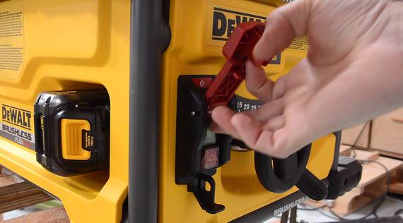 When switching the saw on, it often immediately turns off again. At first I thought I wasn't pushing the button long enough, but eventually I realized that when I let the red cover (that covers the start button) drop down, it taps the stop button hard enough to stop it. So that cover needs to be let down slowly. Kind of an annoying feature.