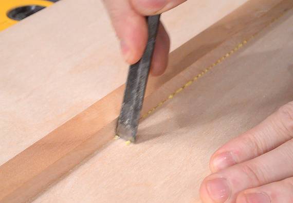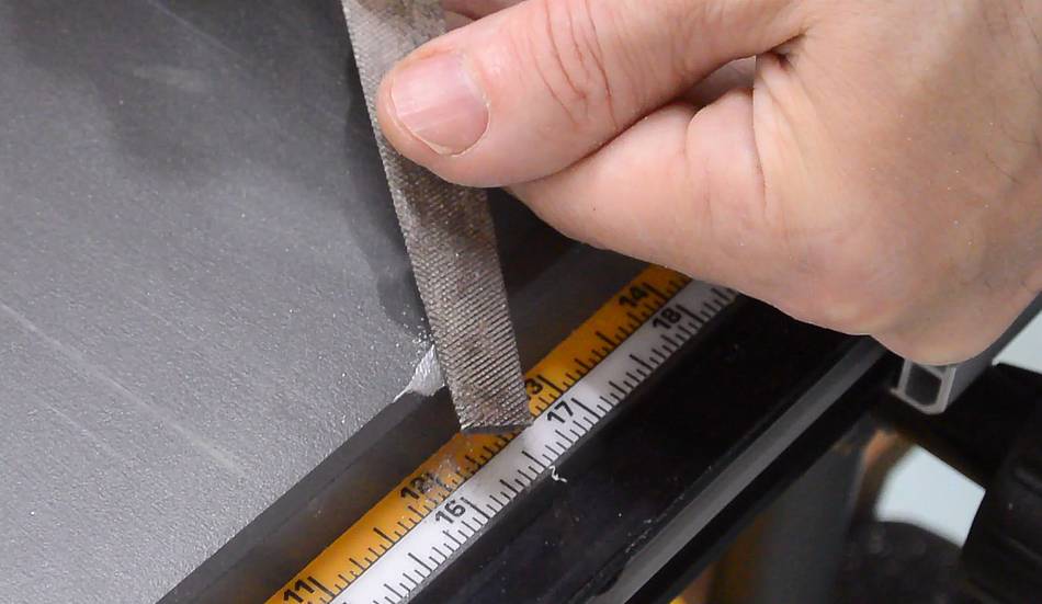 from the edge of the wood than the distance from the blade to the slot in the saw.