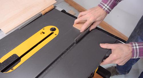snugly, cutting it carefully on the table saw.