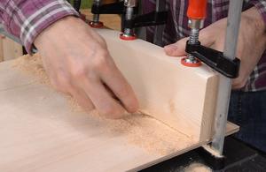 Then squaring it up with respect to the edge that I just cut.