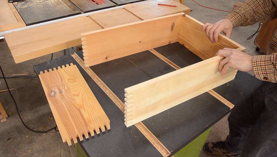 Then cutting the box joints flush on the table saw. I have a temporary
