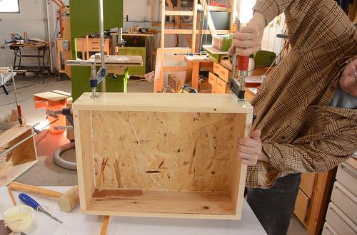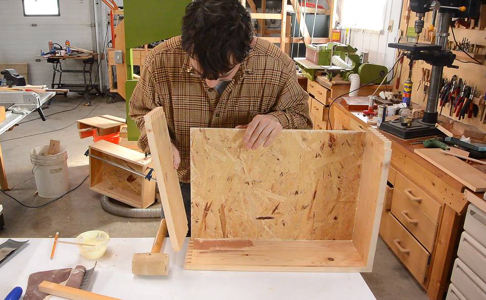 I often just glue the bottom flat on, but I had a bunch of fairly rough OSB to use up, and that OSB would not make for a good sliding surface on the bottom.