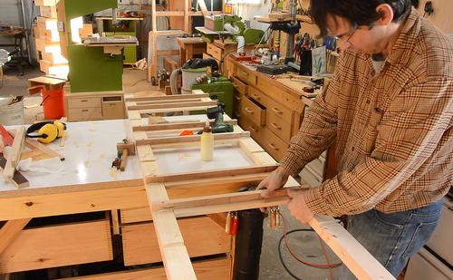 Gluing together one of the frames (there are four of these frames).
