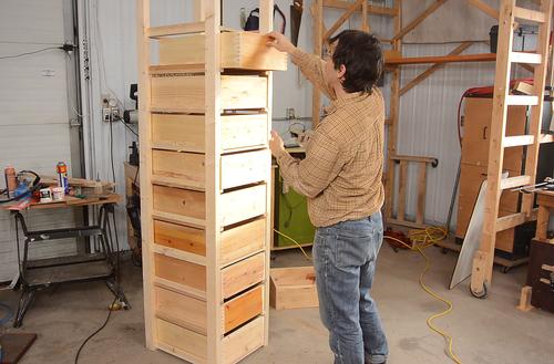 Test fitting the boxes in the rack for the first time.