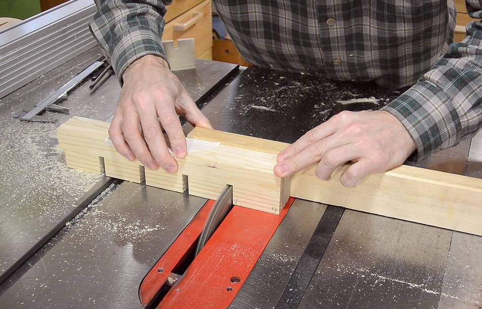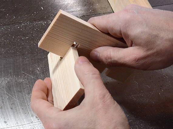 I cut notches in two scraps to test the fit. It was a bit tight,